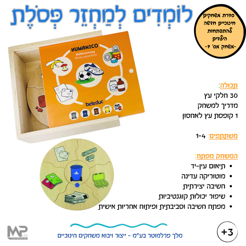 במשחק זה ילדים לומדים כיצד פועלים הפרדת פסולת ומיחזור על ידי הקצאת חלקי פאזל לפח האשפה הנכון . קיימות ושמירה על הסביבה הם המוקד ומתקרבות לילדים באמצעות טיפול פשוט ושליטה עצמית . כך תוכלו ללמד יסודות חשובים שאפילו הילדים הקטנים ביותר יכולים ליישם בחיי היומיום שלהם